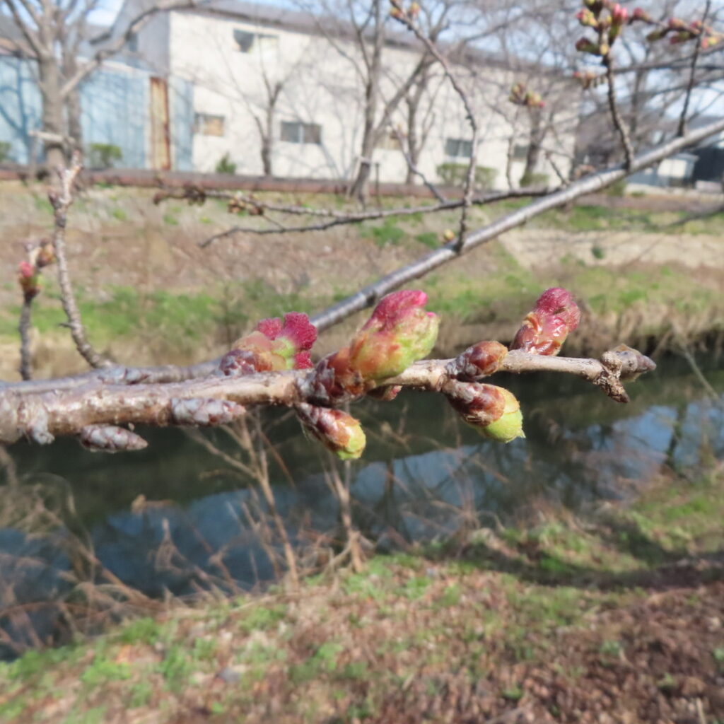 下流のさくら橋付近、中流の鷹匠橋付近はポツポツとピンクのつぼみが膨らみはじめ、連休中には花を付ける可能性が高そうです。